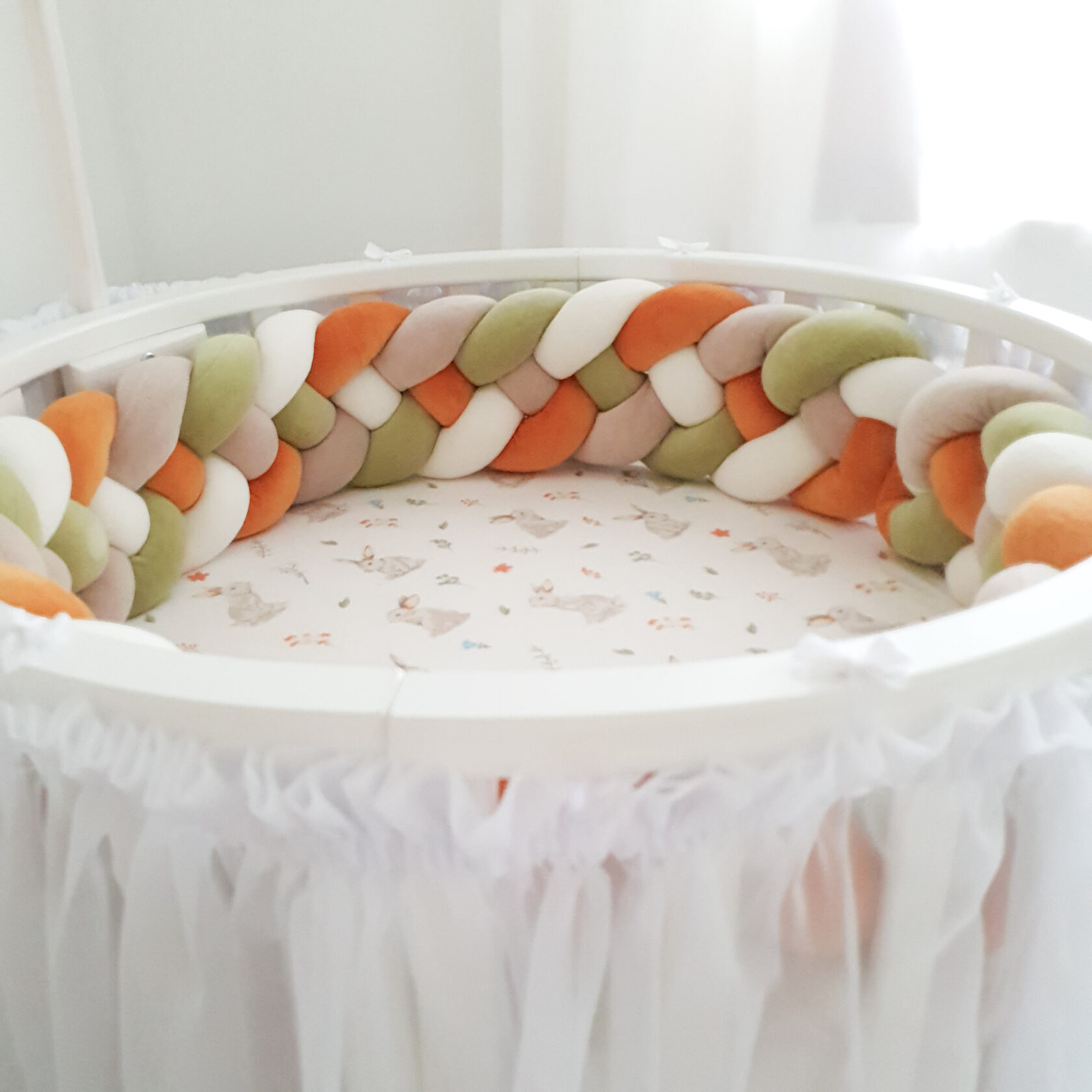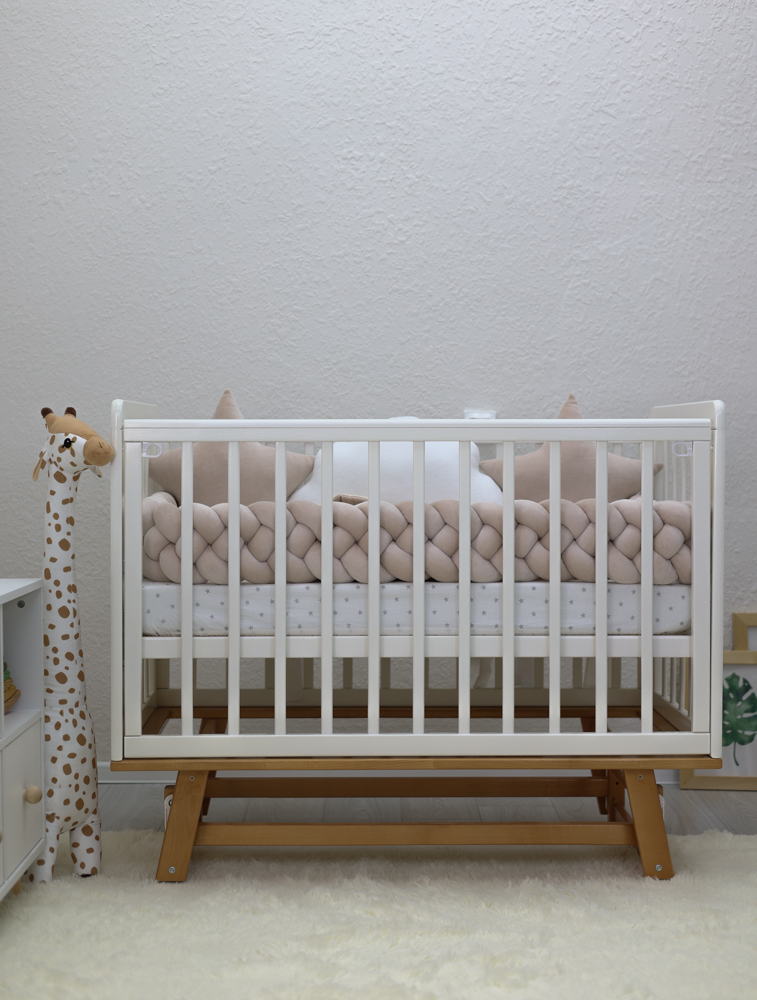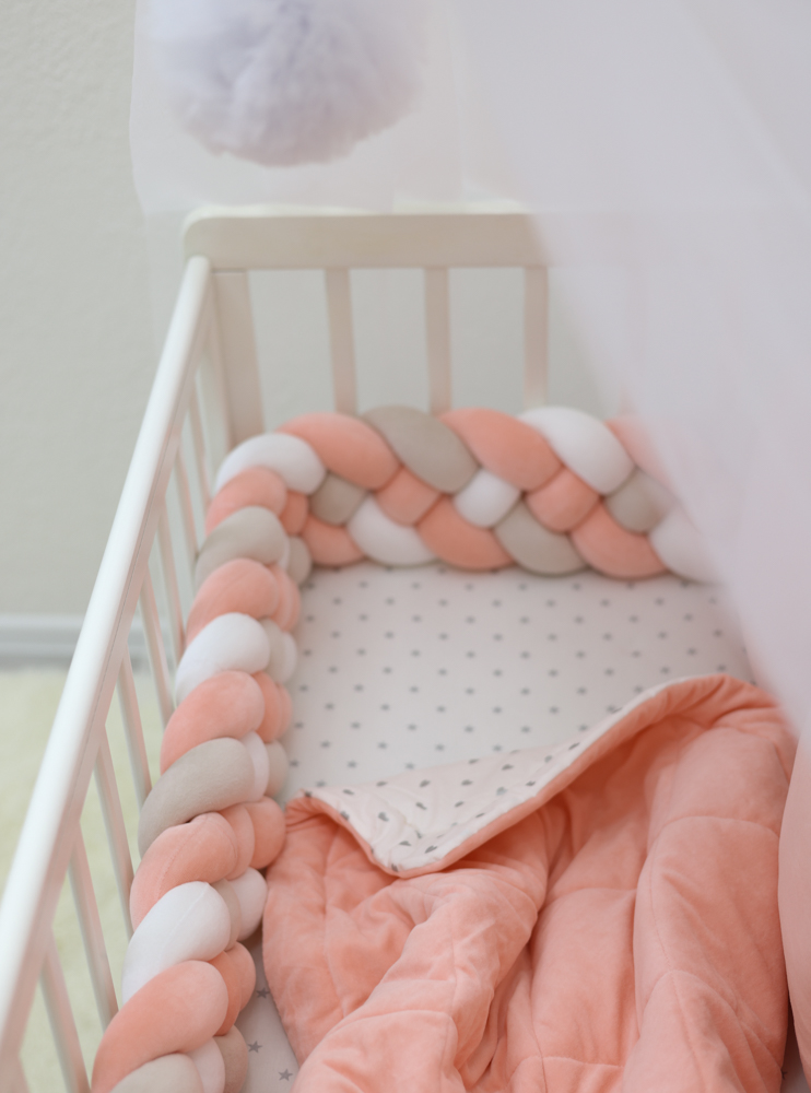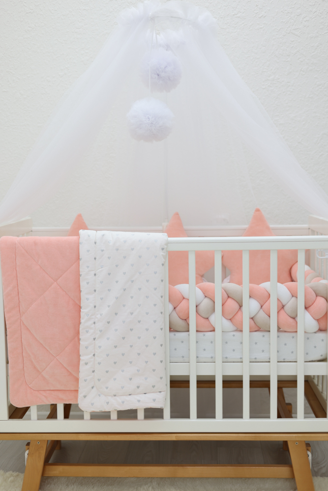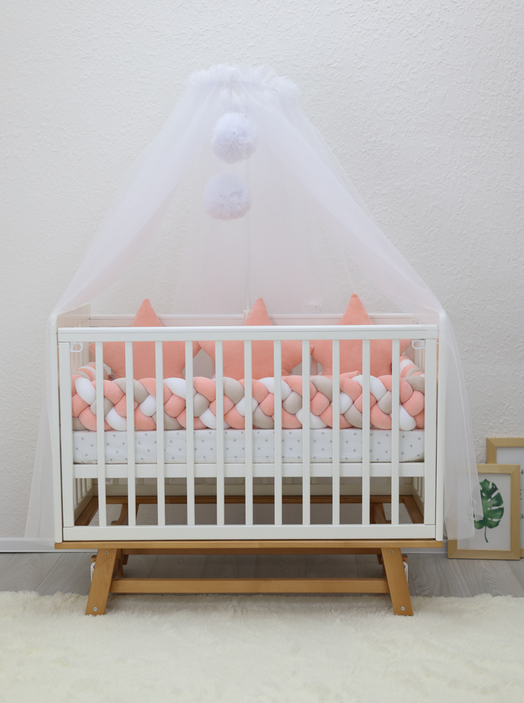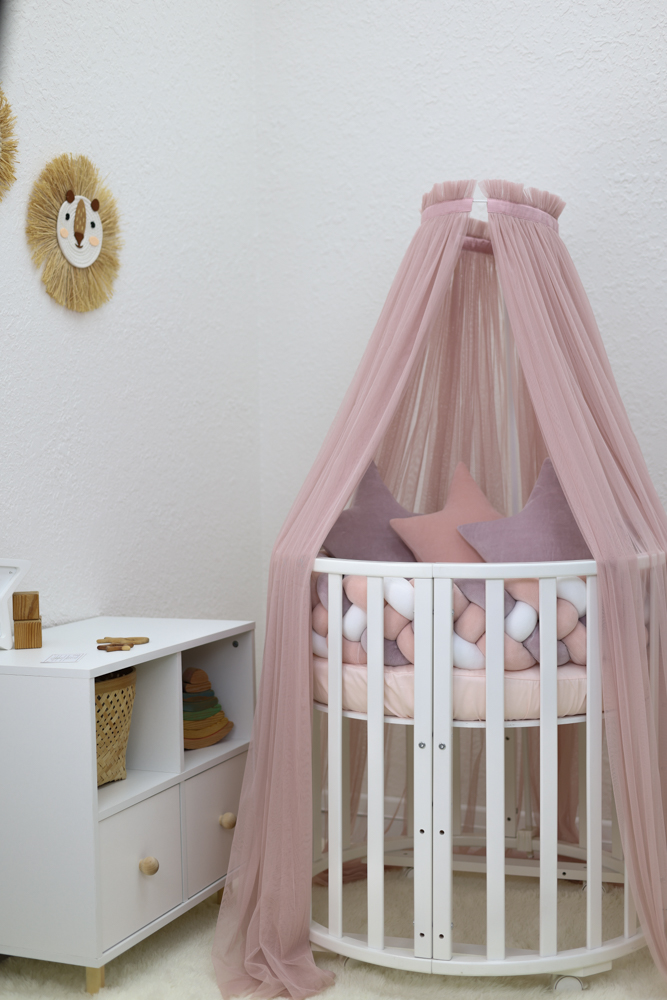 Нежнейшие плоские бортики в оттенке "Нежная сирень" высотой 30 см и длиной 235 см, что идеально подойдет на весь периметр круглой кроватки, диаметром 75 см или на три стороны прямоугольной кроватки 120х60 см или на три стороны овальной кроватки.
