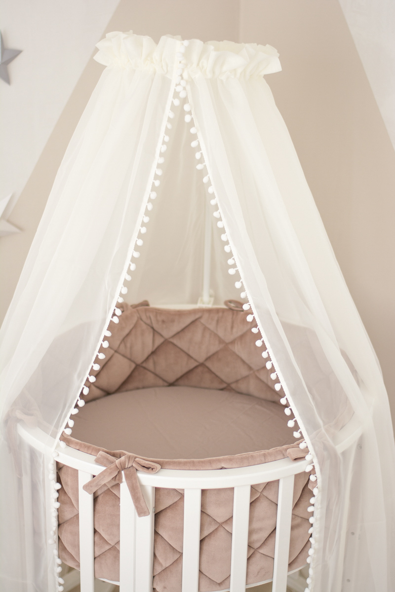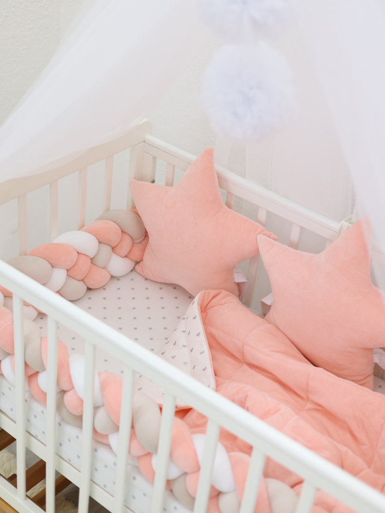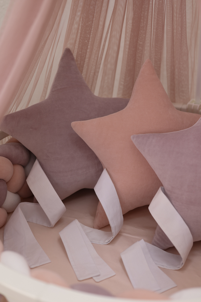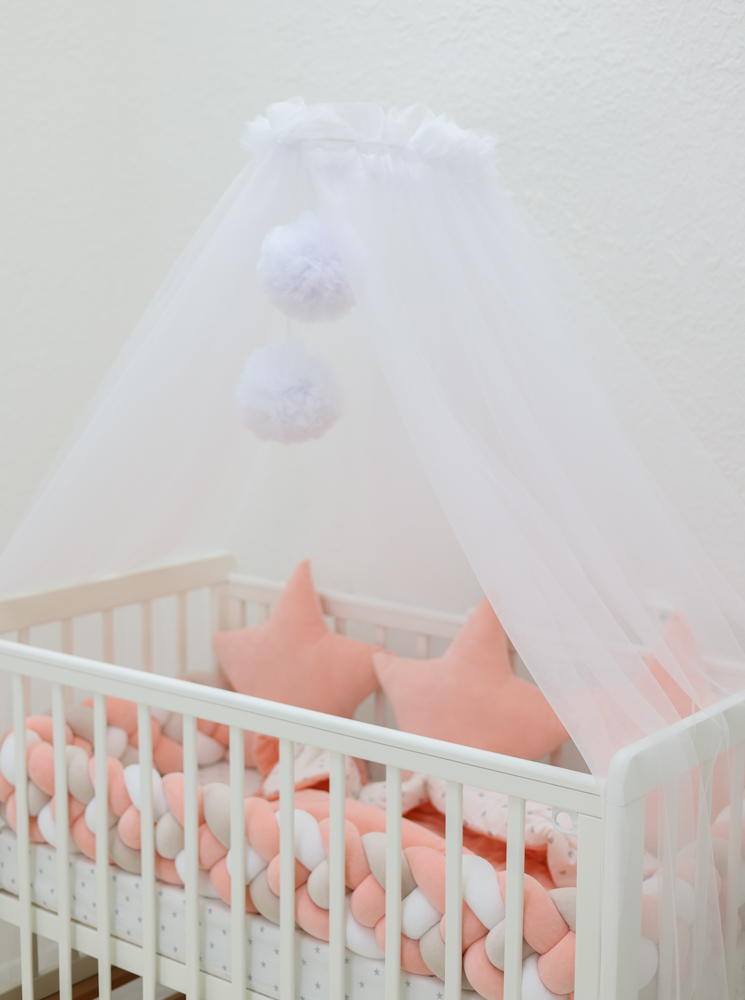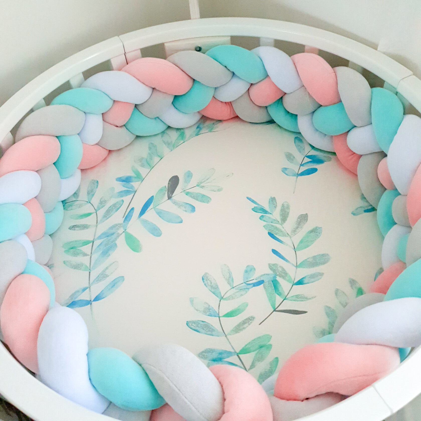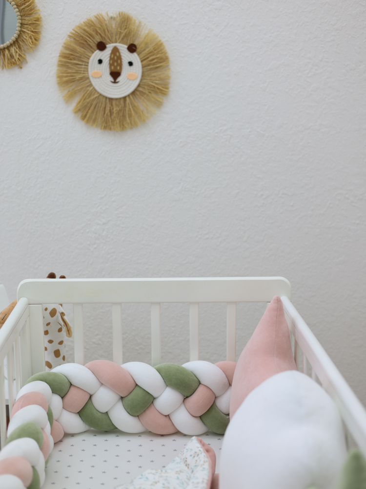 Нежнейшие плоские бортики в оттенке "Нежная сирень" высотой 30 см и длиной 235 см, что идеально подойдет на весь периметр круглой кроватки, диаметром 75 см или на три стороны прямоугольной кроватки 120х60 см или на три стороны овальной кроватки.