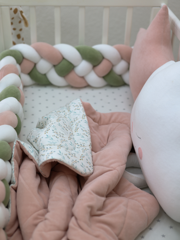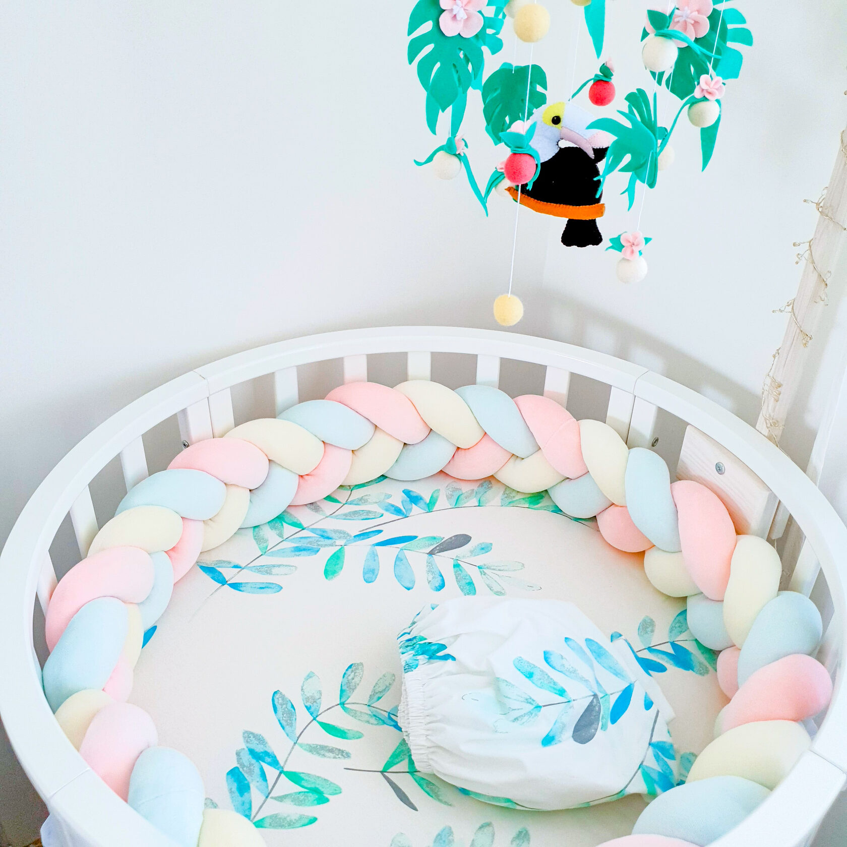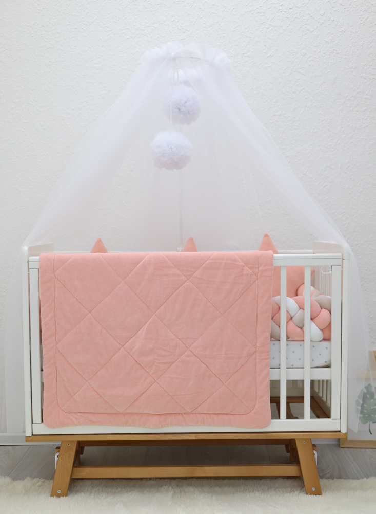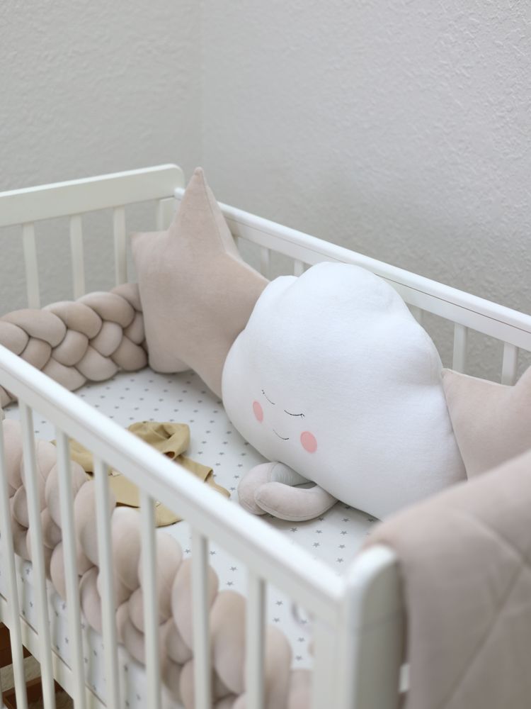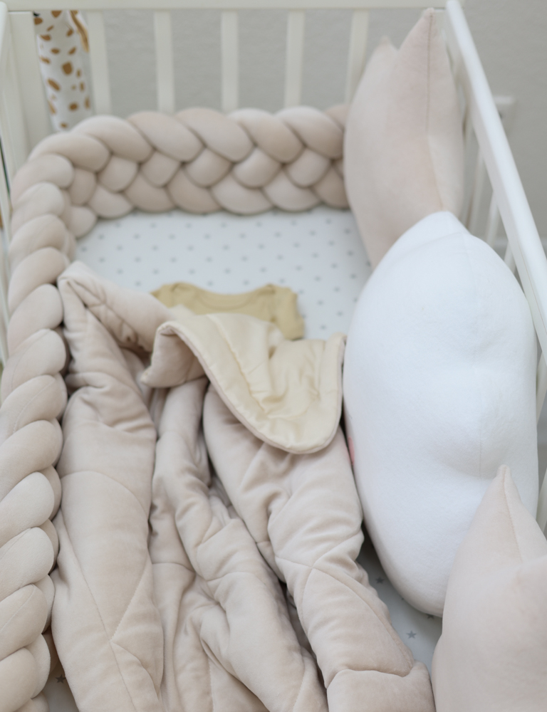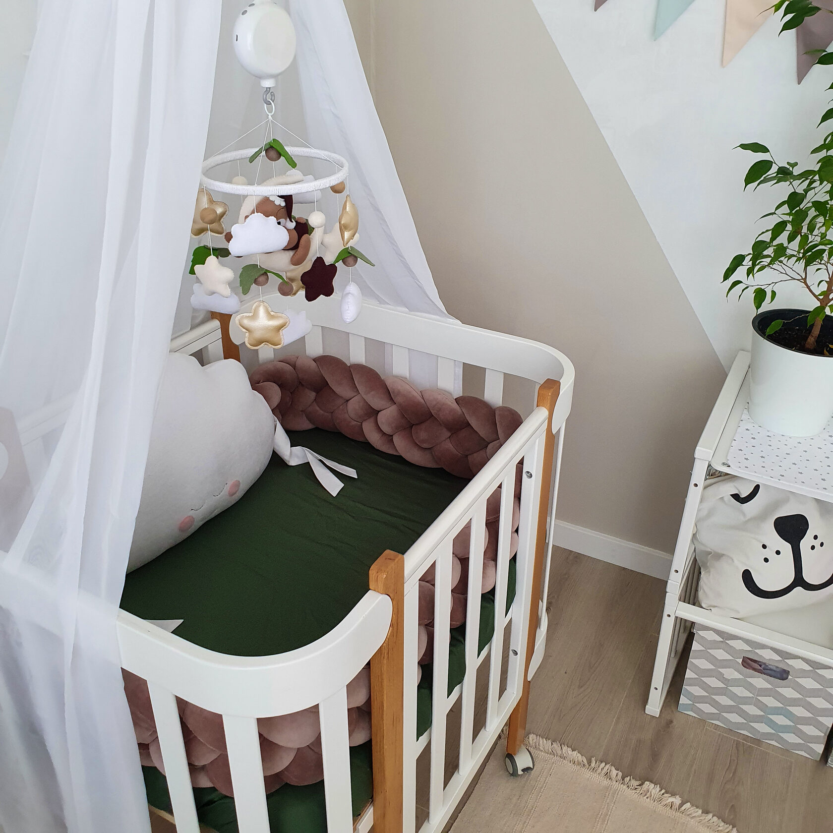 Нежнейшие плоские бортики в оттенке "Нежная сирень" высотой 30 см и длиной 235 см, что идеально подойдет на весь периметр круглой кроватки, диаметром 75 см или на три стороны прямоугольной кроватки 120х60 см или на три стороны овальной кроватки.