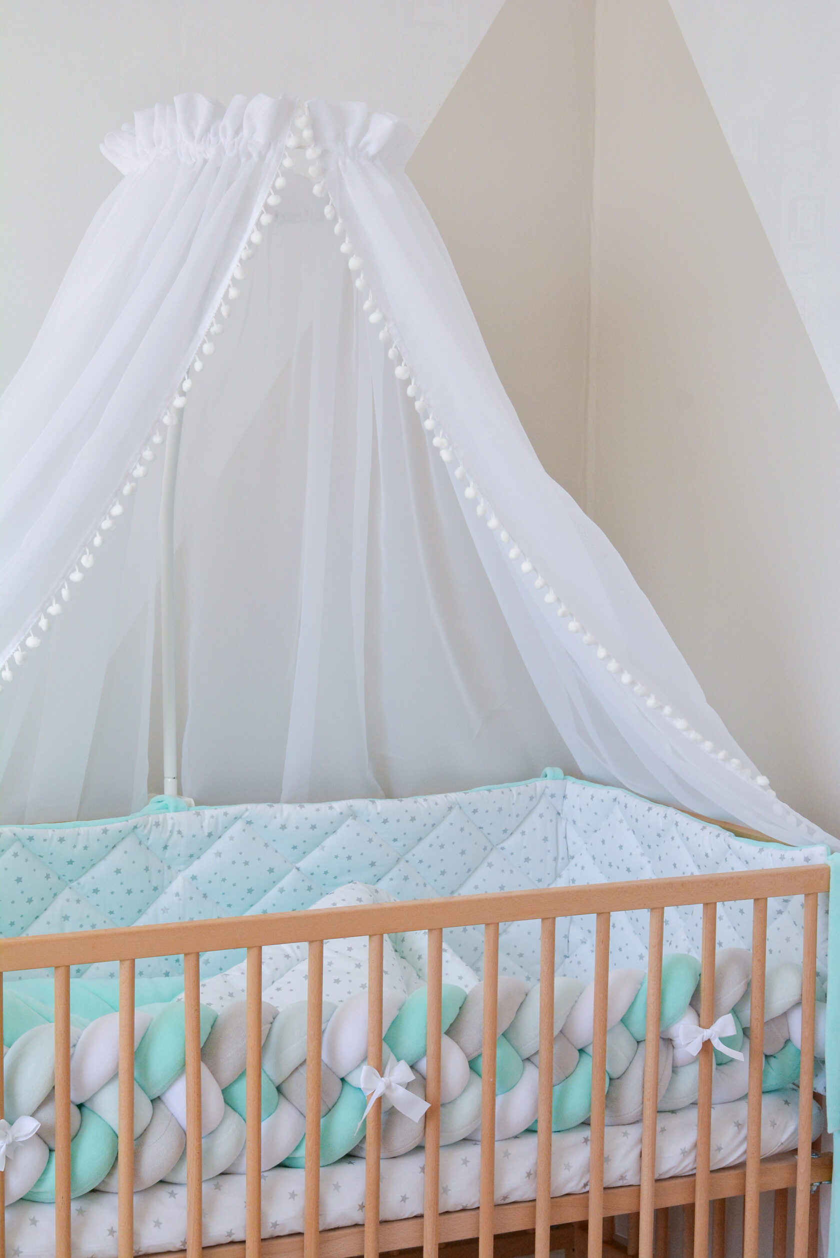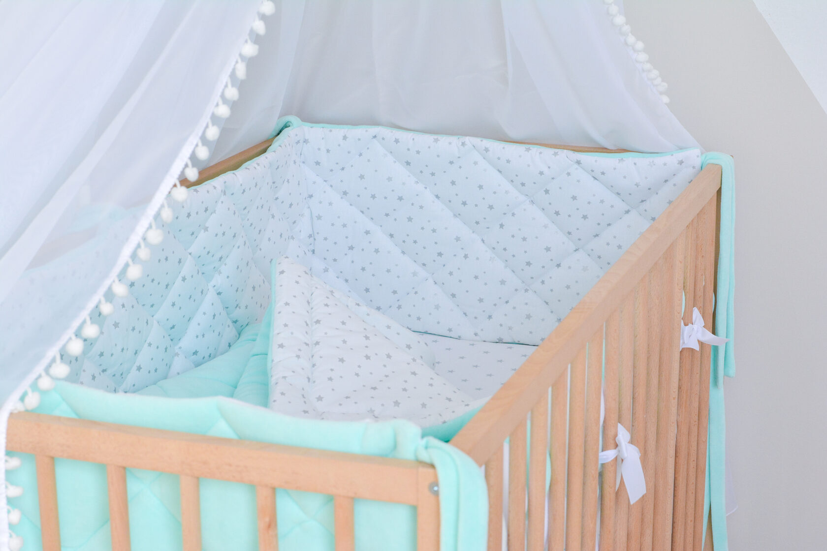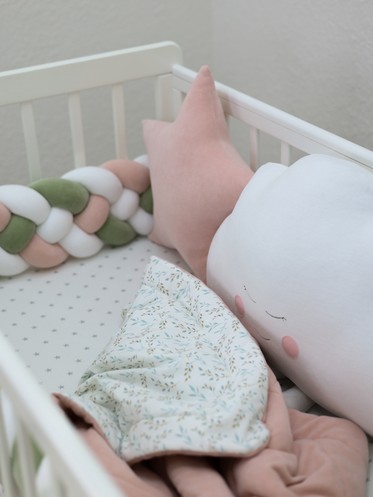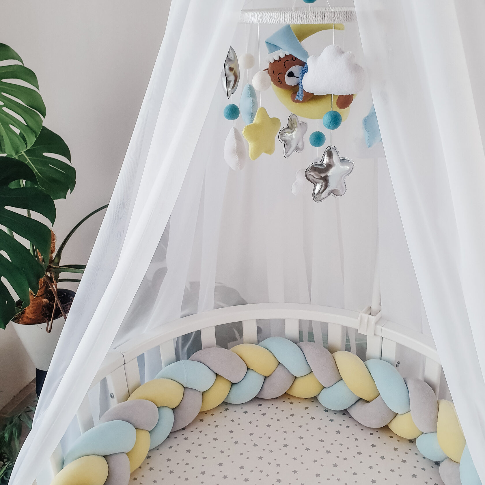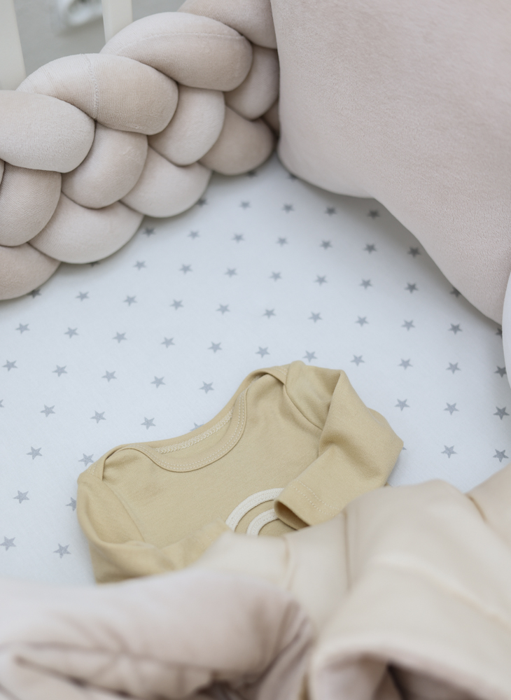 Нежнейшие плоские бортики в оттенке "Нежная сирень" высотой 30 см и длиной 235 см, что идеально подойдет на весь периметр круглой кроватки, диаметром 75 см или на три стороны прямоугольной кроватки 120х60 см или на три стороны овальной кроватки.
