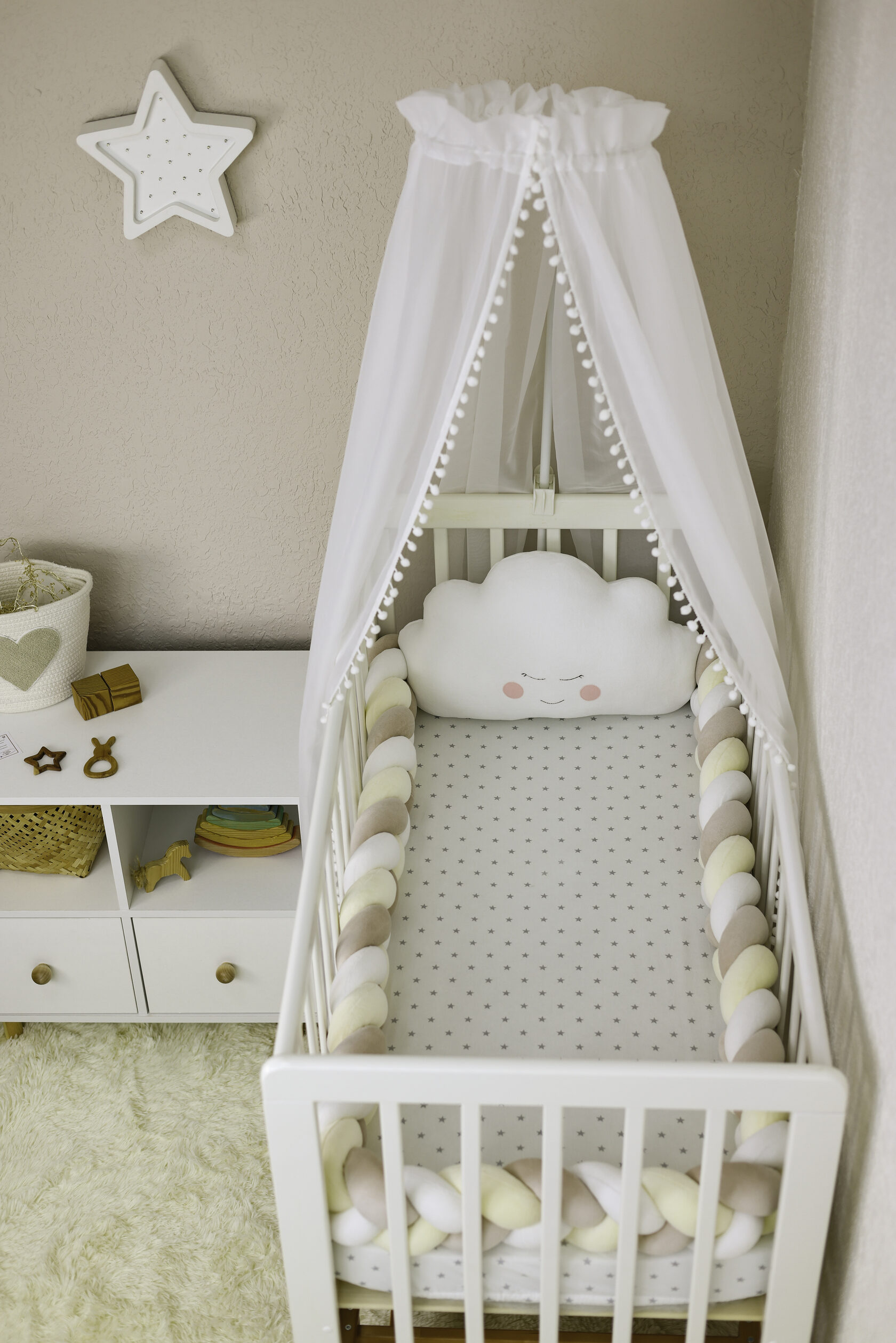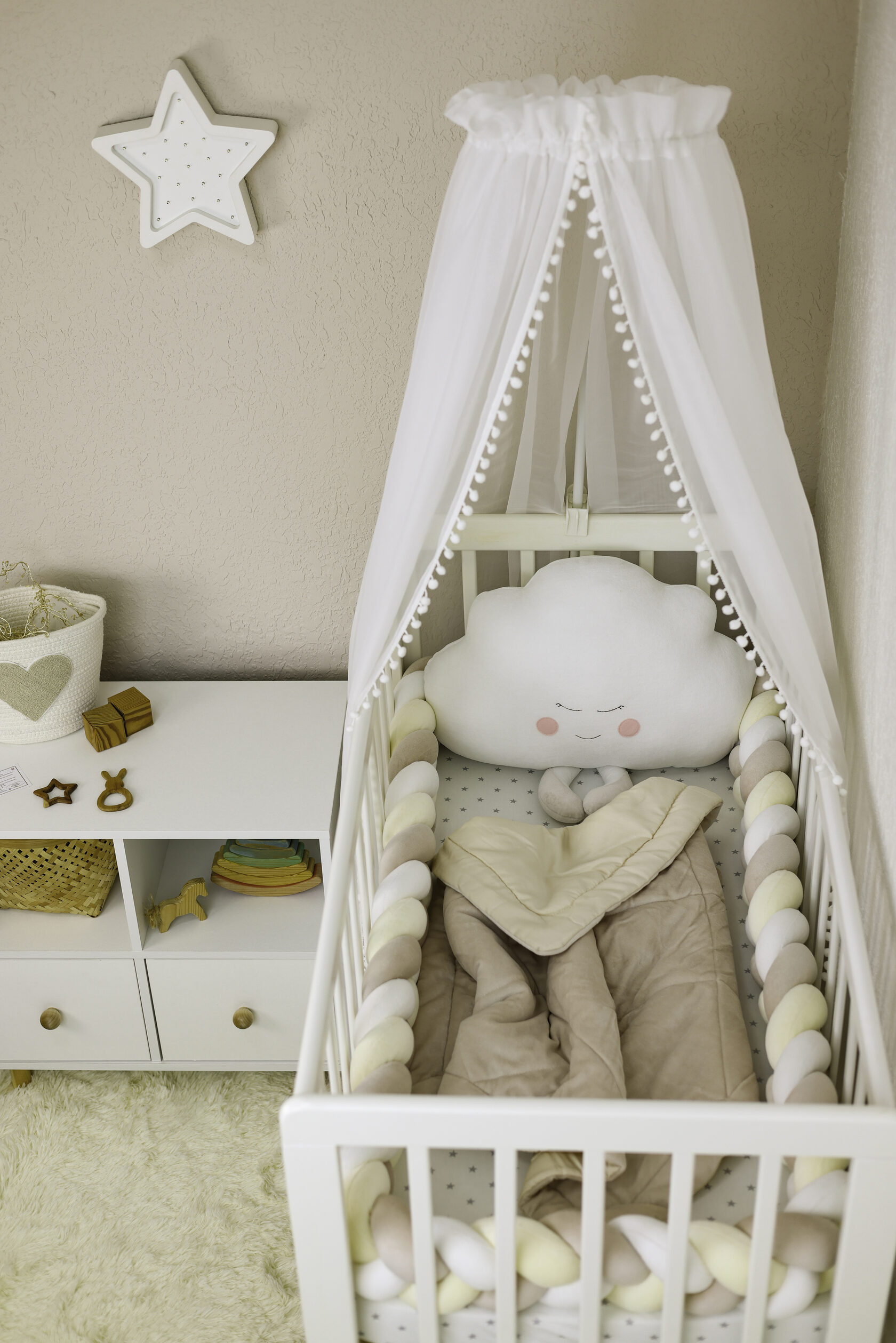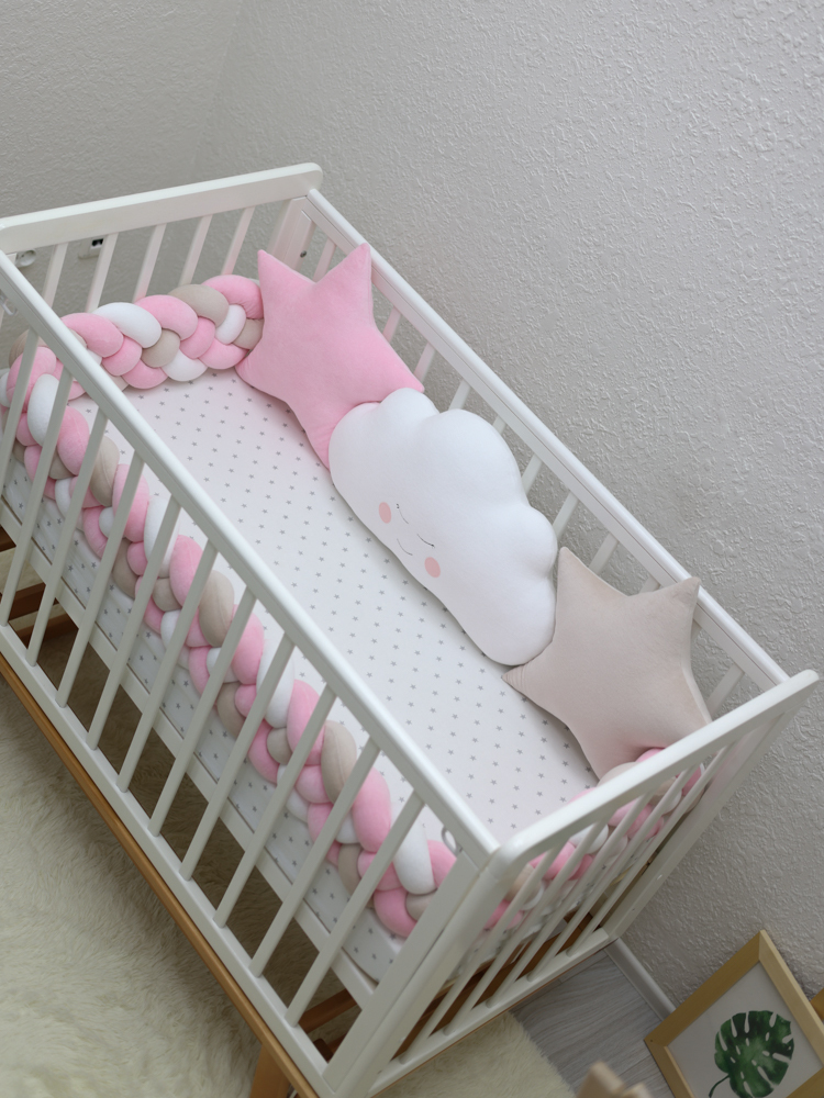 Облачко-бортик из нежнейшего хлопкового велюра с милейшей вышивкой, занимательными ножками и вшивными хлопковыми лентами. Высота 37 см Длина 55 см Ширина 15 см