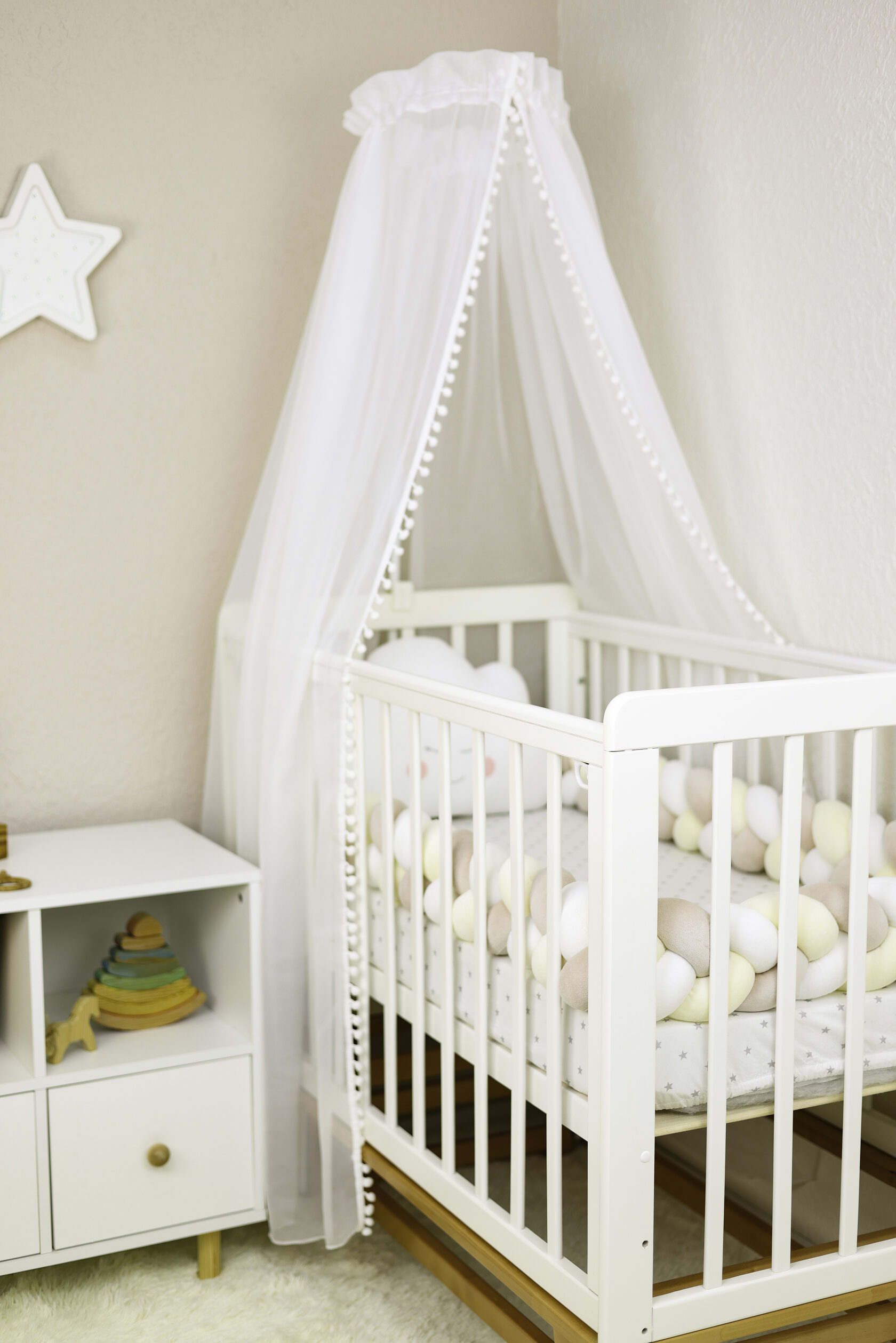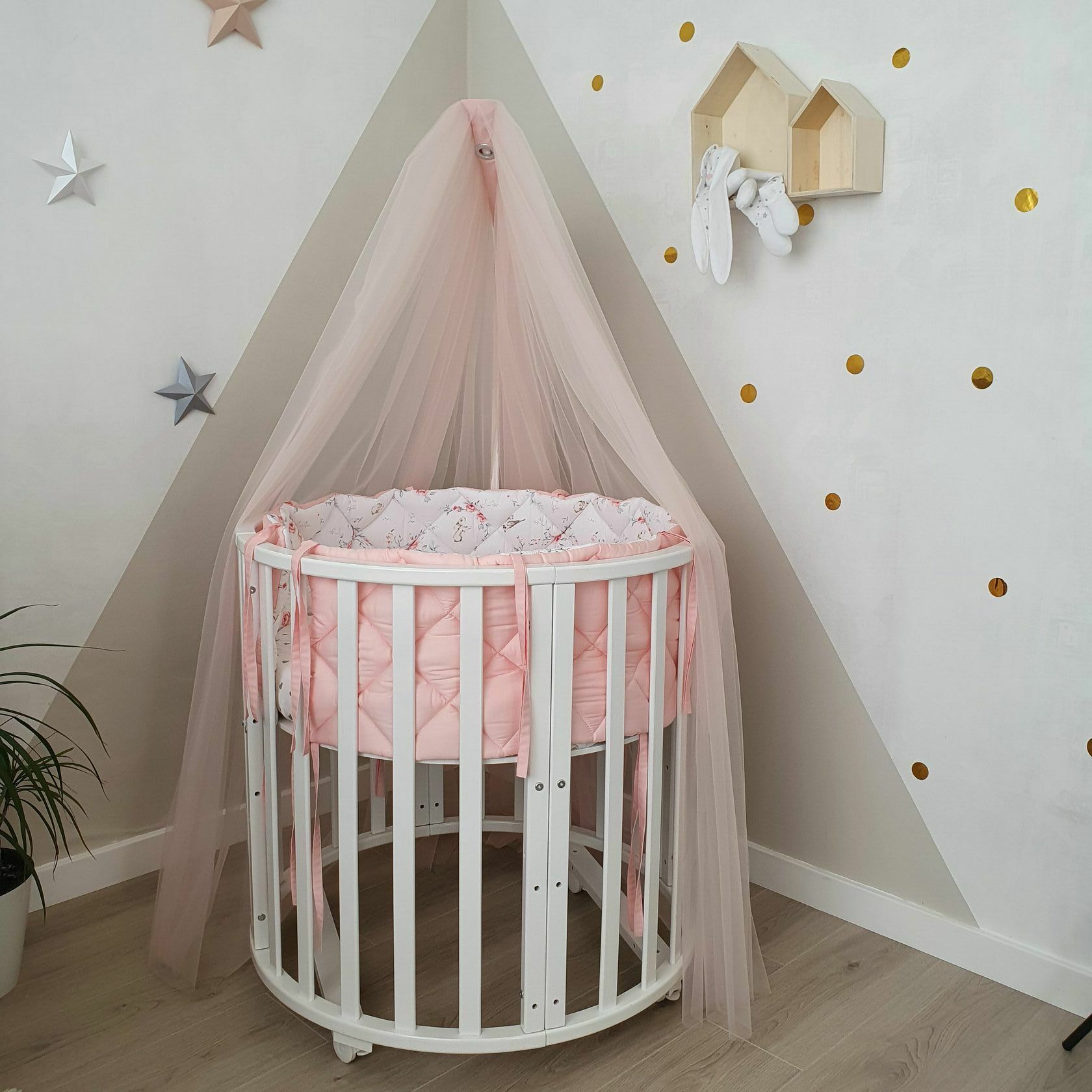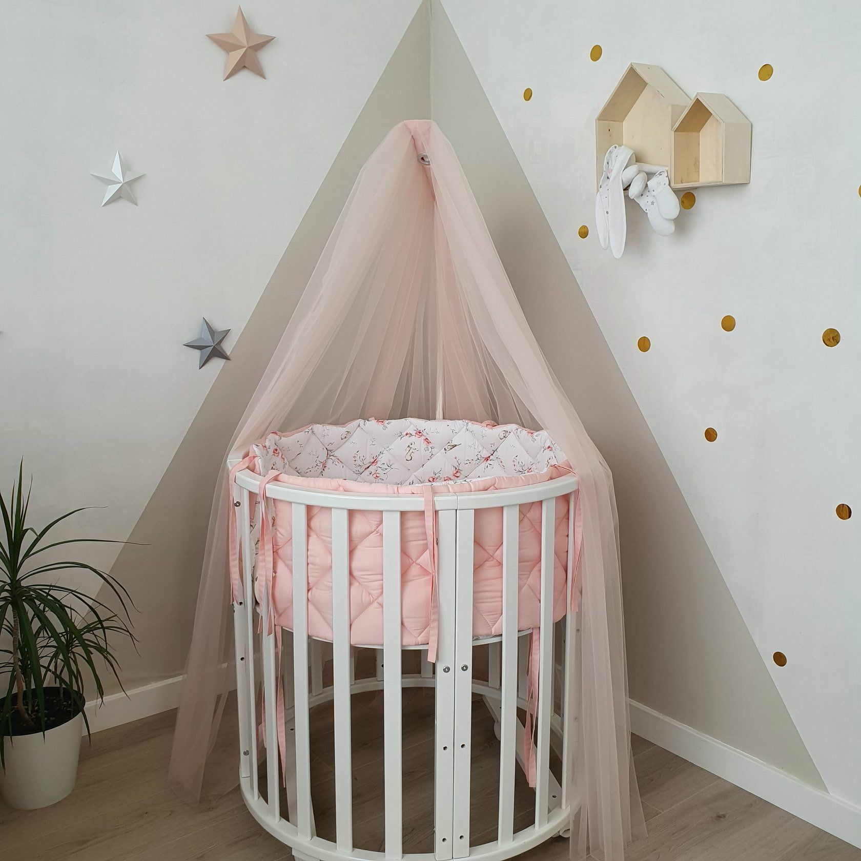Легкий и невесомый балдахин из мягкого фатина защитит вашу Принцессу от яркого солнечного света и подарит ощущение безопасности и комфорта в кроватке