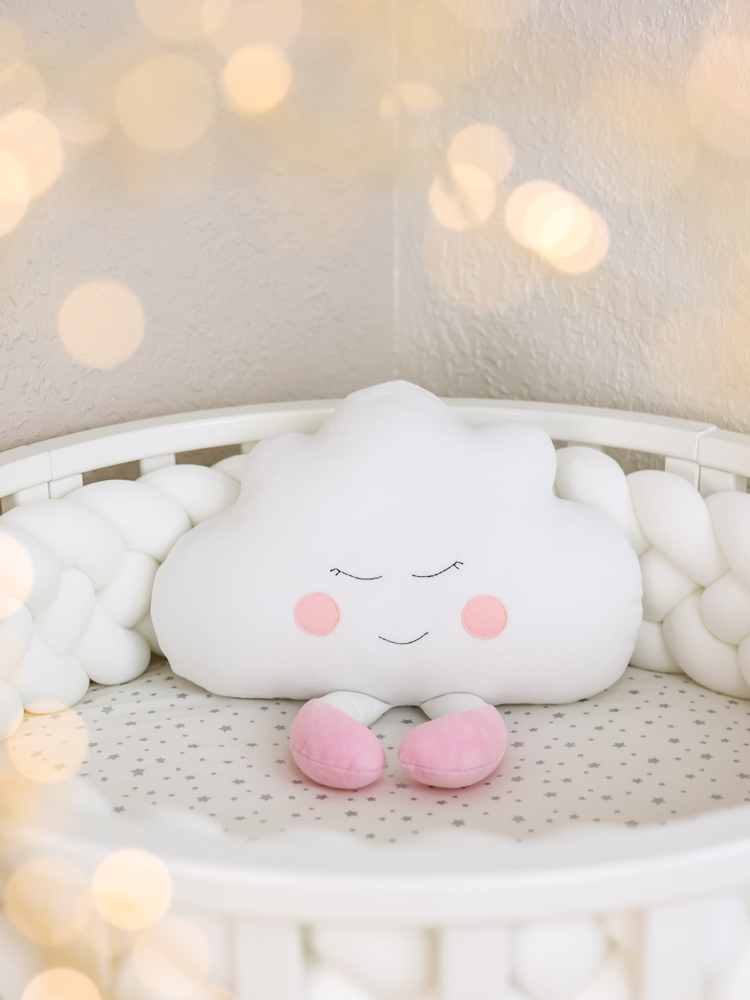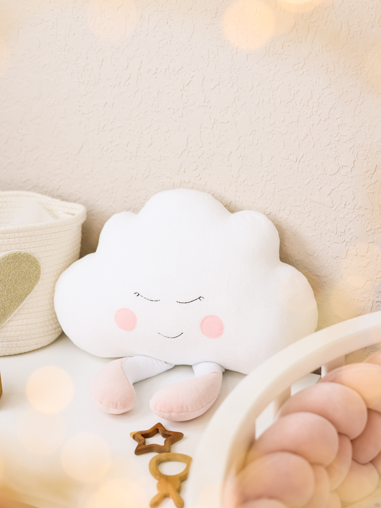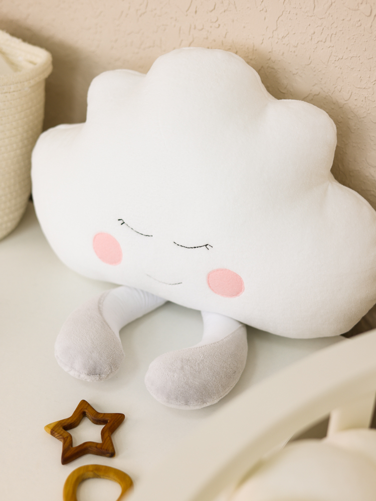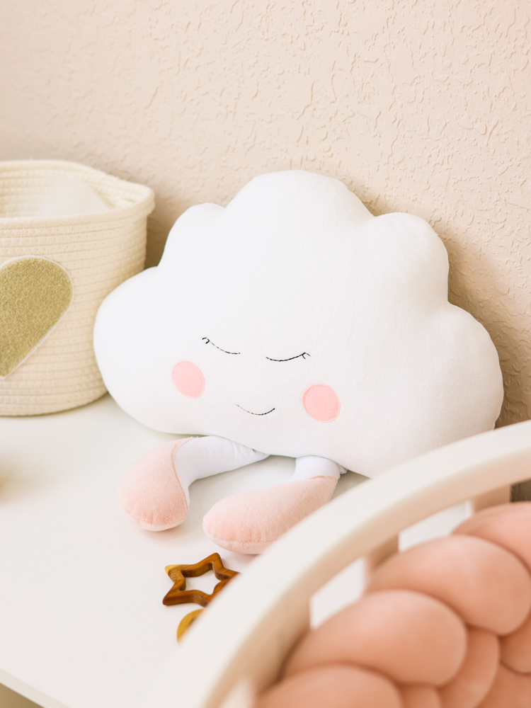 Милое облачко подушка не только приятная на ощупь игрушка добавляющая уюта, но и игрушка активно развивающая воображение и тактильное развитие малыша