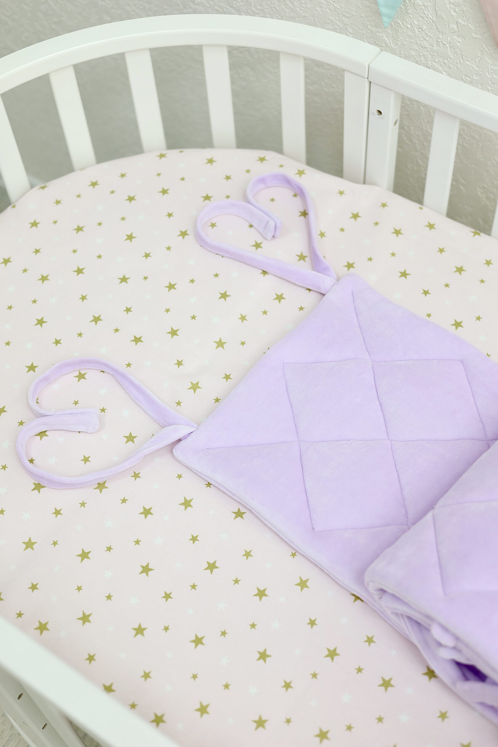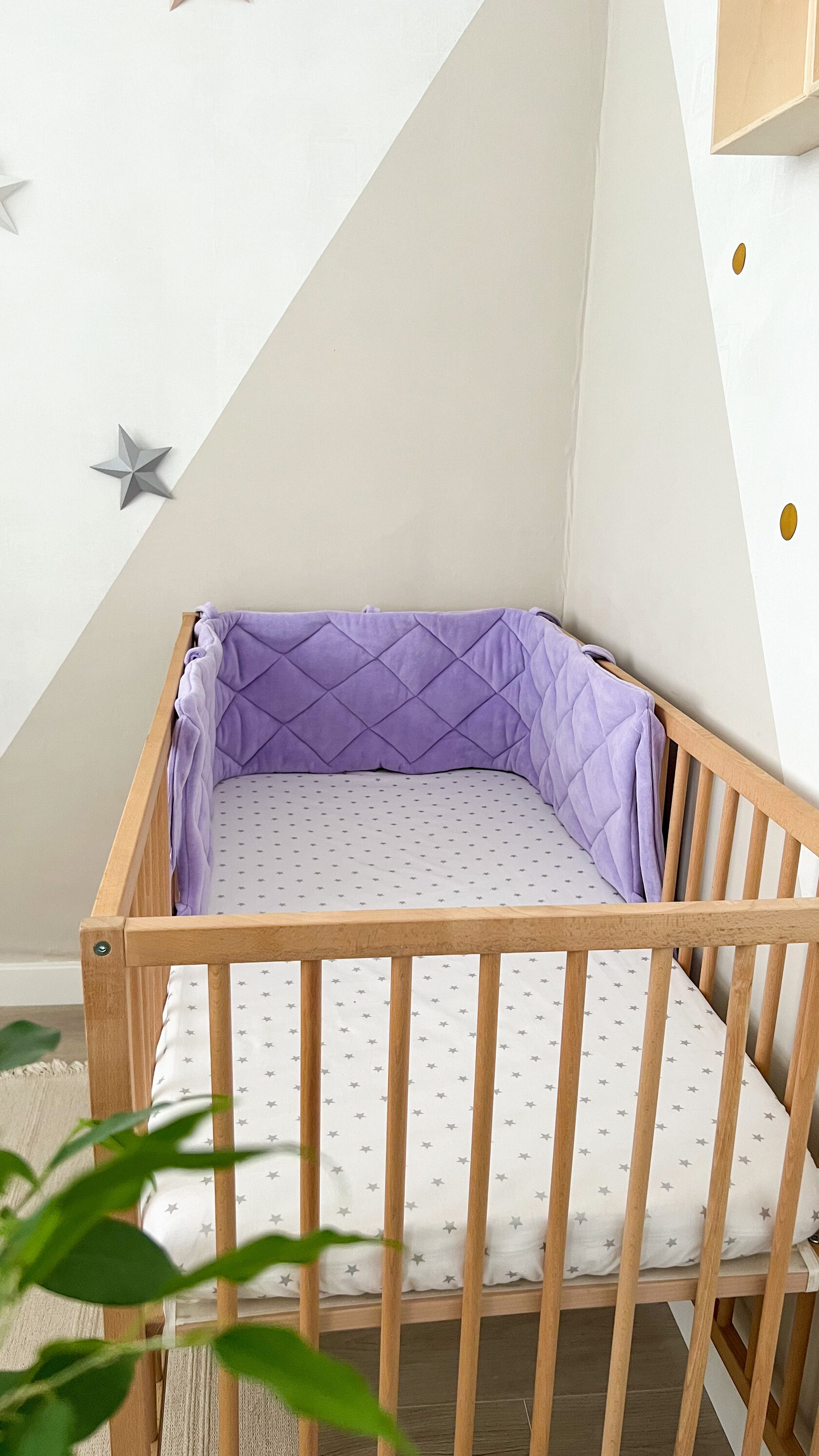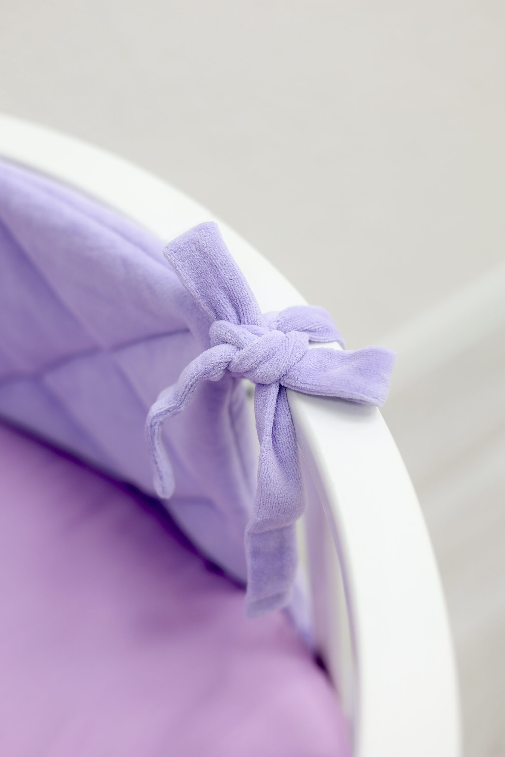 Плоский бортик "Very Soft" в оттенке "Нежная лаванда" Выполнен из нежного хлопкового велюра, который обладает очень мягкой текстурой и не вызывает аллергию. Длина бортика 235 см, подойдёт для: