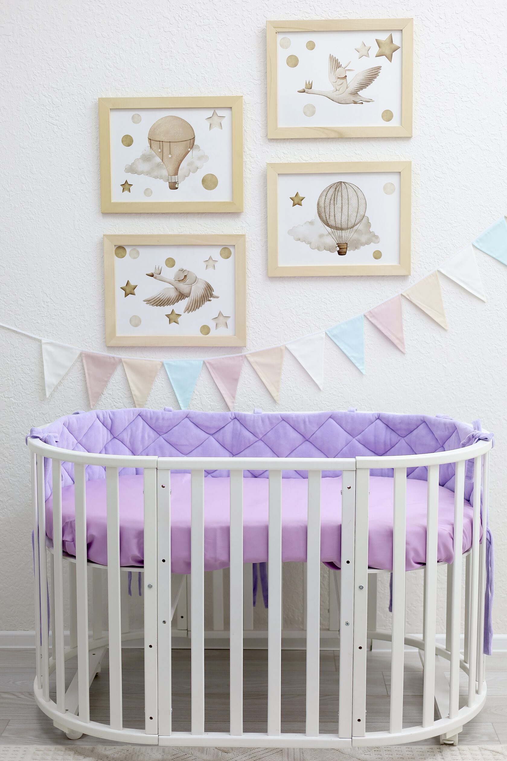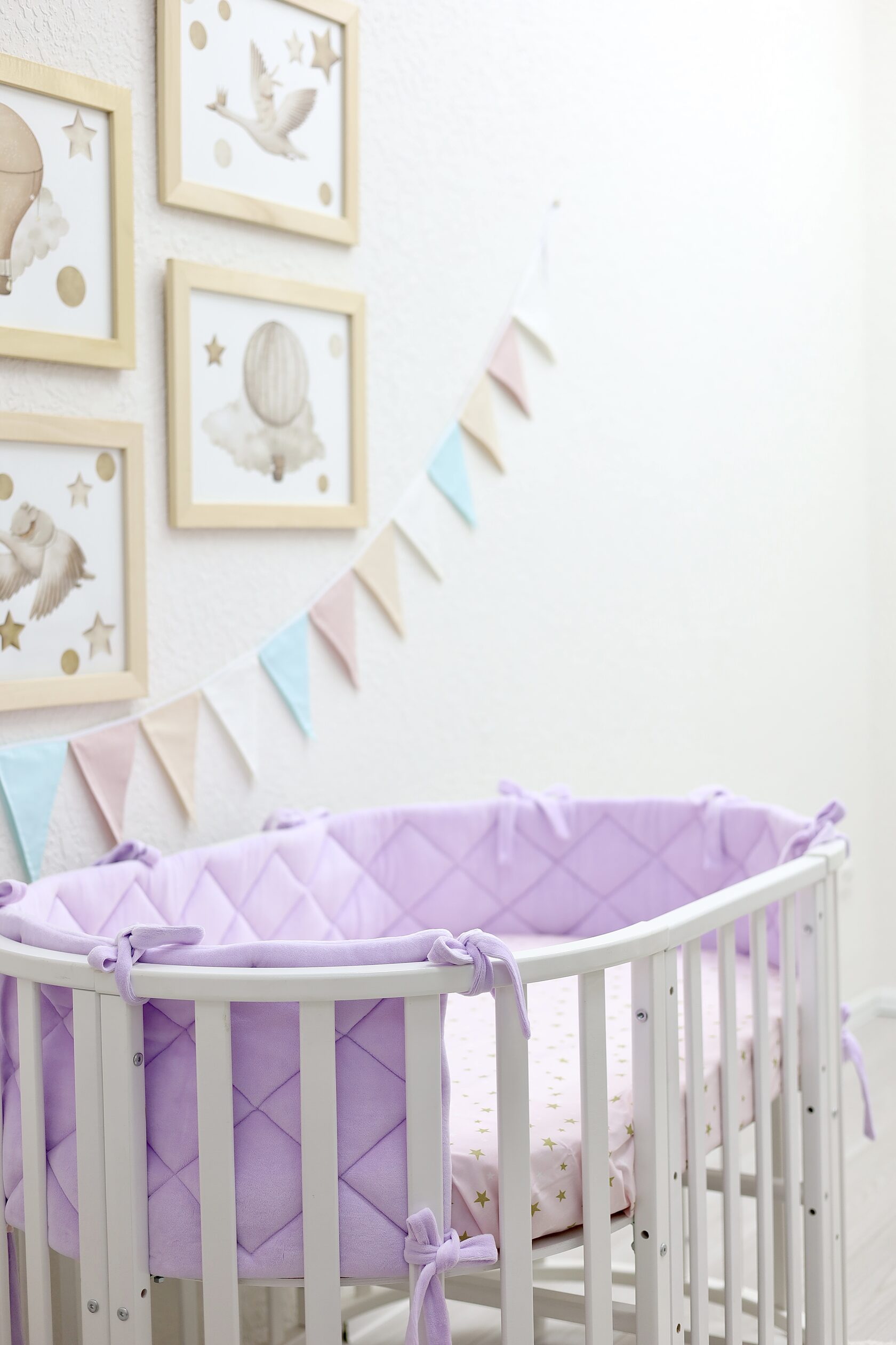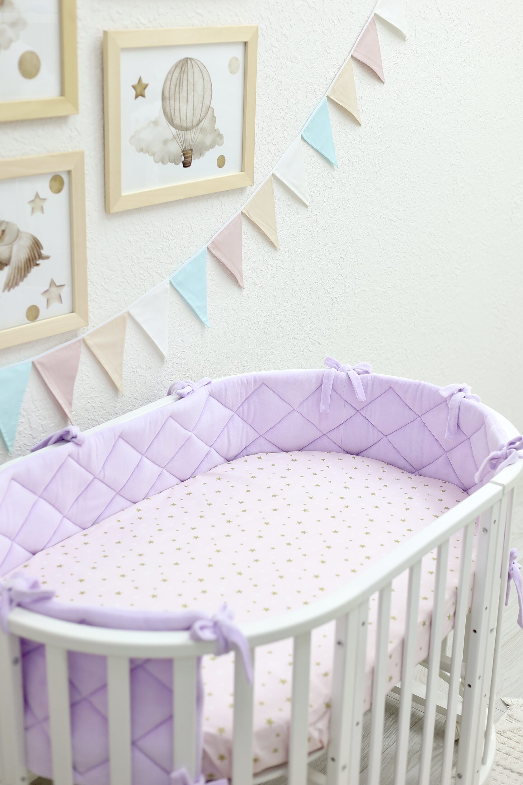Плоский бортик "Very Soft" в оттенке "Нежная лаванда" Выполнен из нежного хлопкового велюра, который обладает очень мягкой текстурой и не вызывает аллергию. Длина бортика 235 см, подойдёт для: